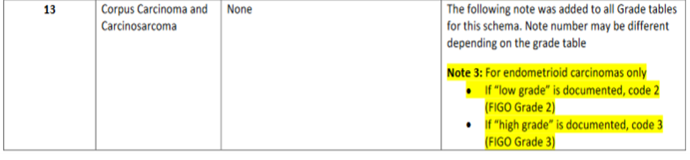 If “LOW grade” is documented for corpus uterus, remember to code 2 as if it was FIGO Grade2
